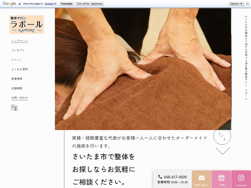 整体サロンラポール(〒330-0061 埼玉県さいたま市浦和区常盤1丁目7−11)では、筋膜リリースの専門知識を持つ施術者が在籍しており、一人ひとりの状態に合わせたオーダーメイドの施術を提供しています。施術者の経験や技術力は、効果の差に直結するため、しっかりと確認することをおすすめします。
